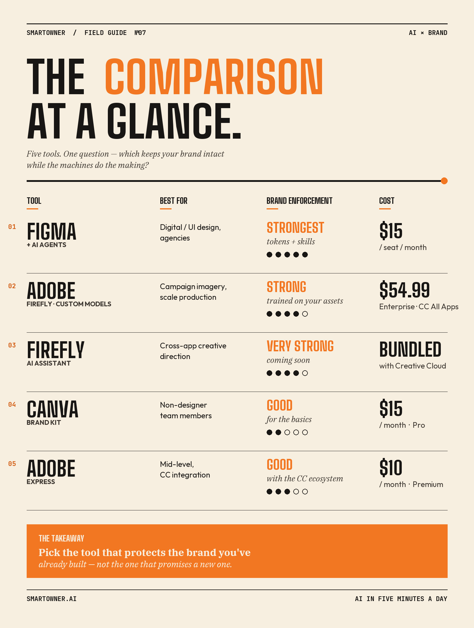 For a graphic designer who wants to stop checking pixels and start spending more time on ideas, the answer right now is blended at Adobe Firefly Custom Models for image generation, Figma for any digital/UI work, and the Firefly AI Assistant the moment it hits public beta. That combination gives you AI that starts from your brand, not from a blank slate.