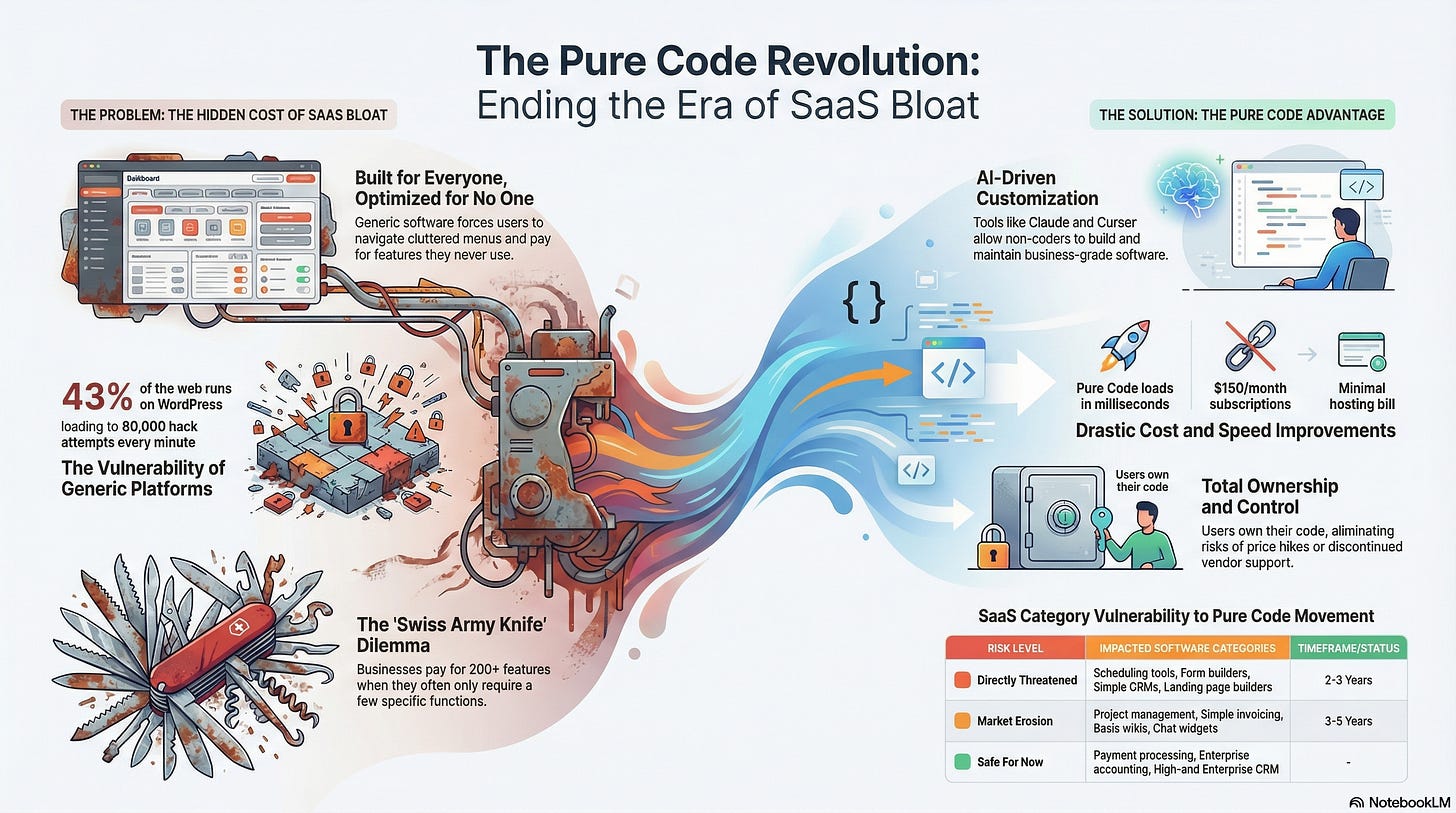 And now, with AI built INTO these applications, they can do things that off-the-shelf software never could. Your Pure Code tool knows YOUR clients. YOUR expenses. YOUR patterns. It doesn’t need to be generic because it was never designed for anyone but you.